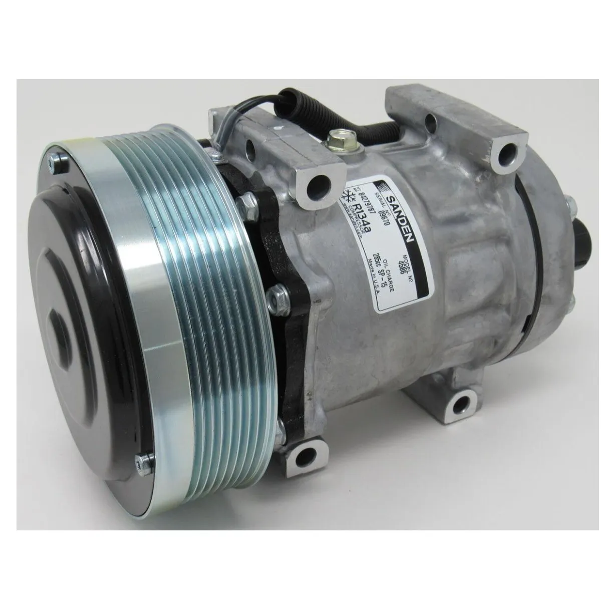 Sanden 4586, genellikle iş makineleri (CATERPILLAR, CASE, New Holland) ve ağır hizmet uygulamaları için tasarlanmış, 12V voltajlı bir SD7H15 model klima kompresörüdür. R134a soğutucu gaz ile çalışır ve 8 kanallı (PV8) serpantin tipi bir kasnağa sahiptir.