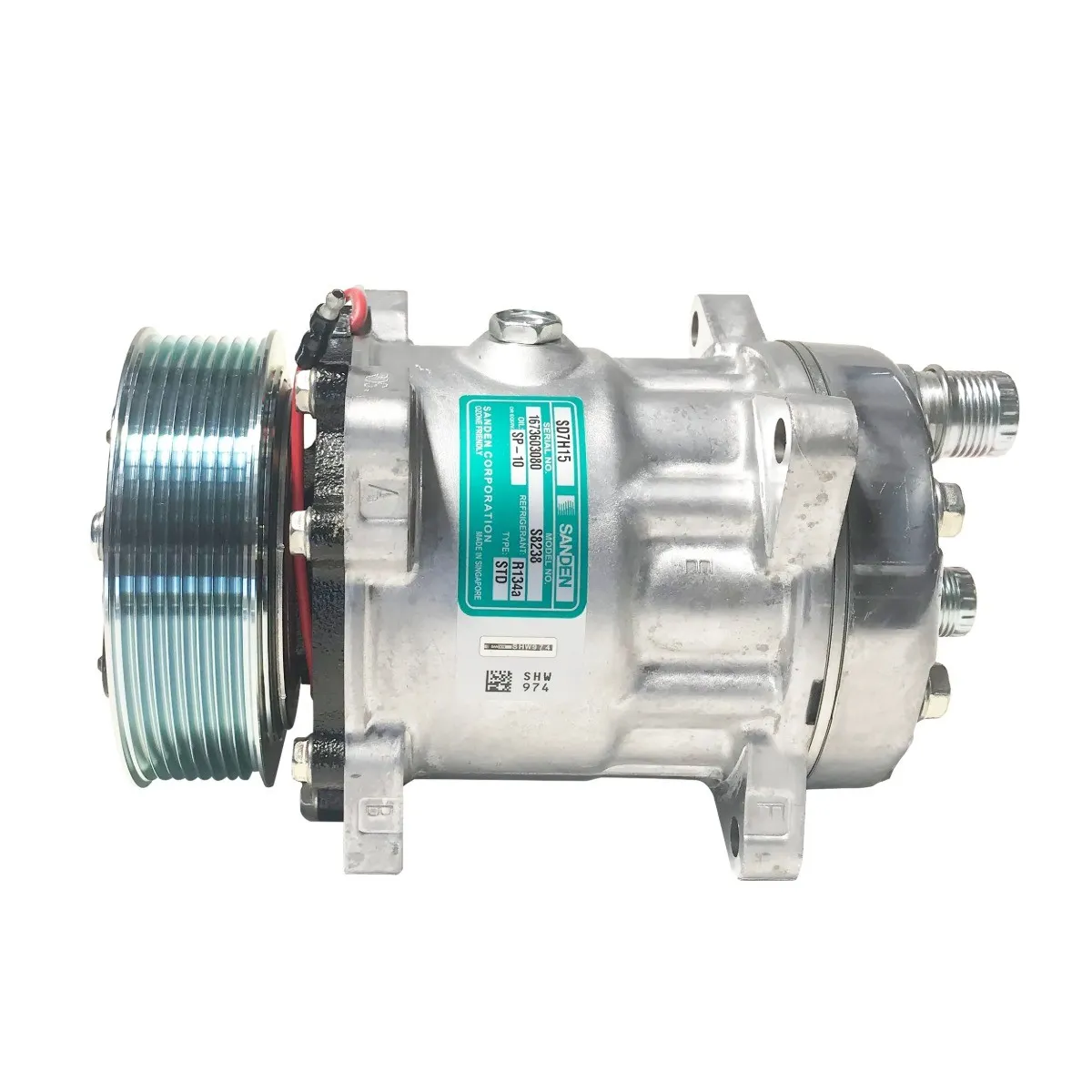 Sanden 8238 SD7H15 klima kompresörü, genellikle ağır hizmet tipi uygulamalar ve tarım/iş makineleri için tasarlanmış